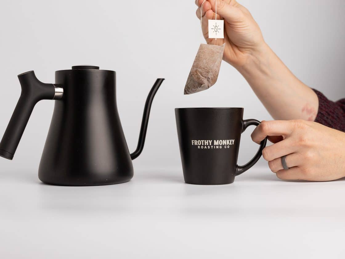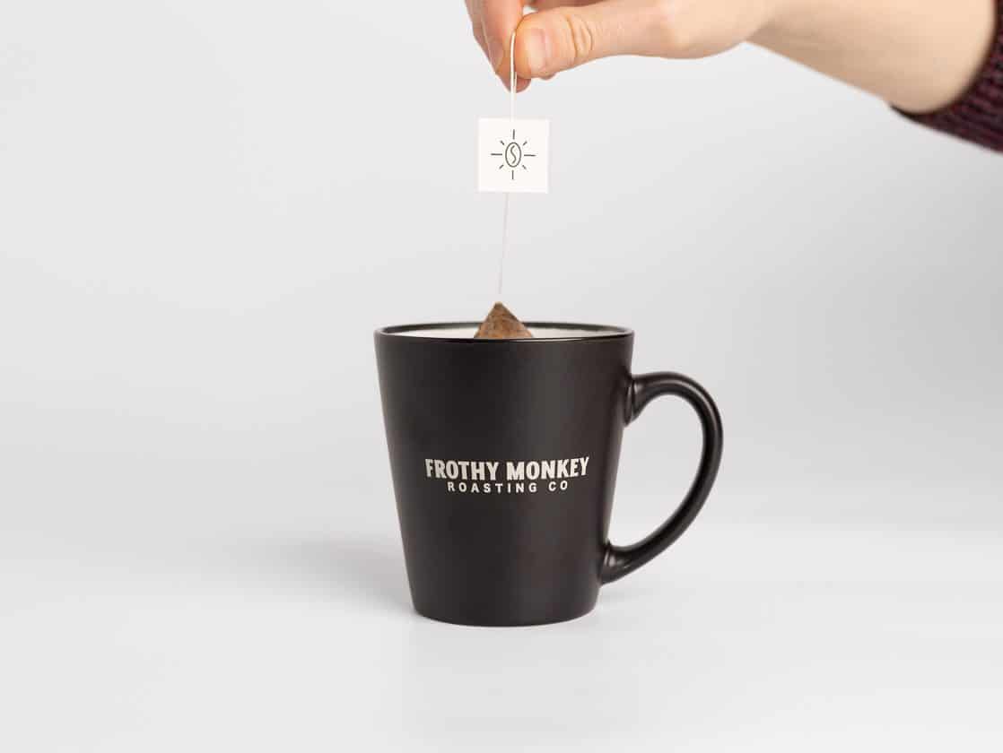 Once 5 minutes have passed remove your coffee bag. For added strength leave the bag in your mug for as long as you’d like.
