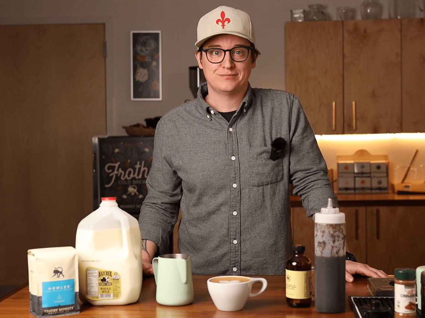 Join our coffee education connoisseur, Ryan Bledsoe as he shows us how to make a Frothy Monkey signature latte, the Monkey Mocha. We combine our Frothy Monkey Banana Syrup with house-made chocolate sauce and Howler espresso blend coffee to create a drink we’ve been making for 18 years. This may be THE OG Frothy Monkey latte.