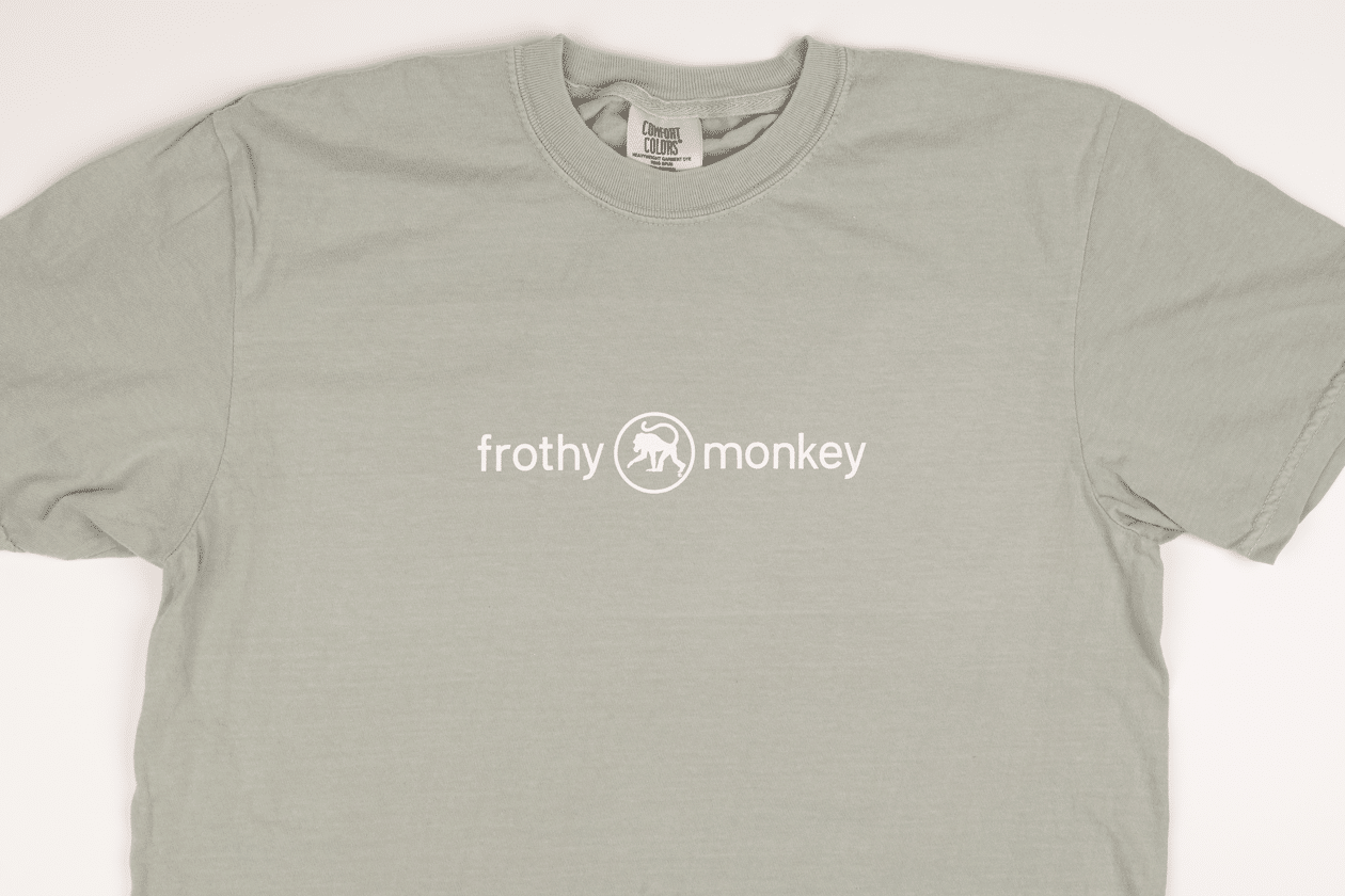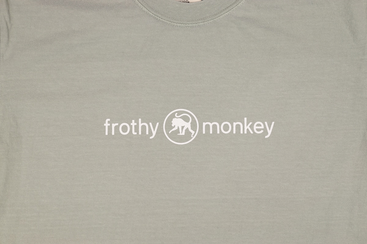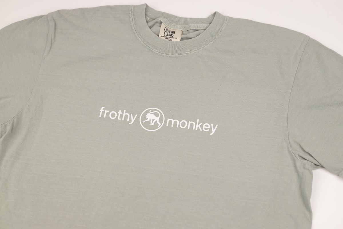These t-shirts feature our classic Frothy Monkey word-mark logo printed with water-based, soft-touch ink on sustainably sourced 100% ring-spun cotton t-shirts. We are pleased to introduce you to your new favorite t-shirt!
