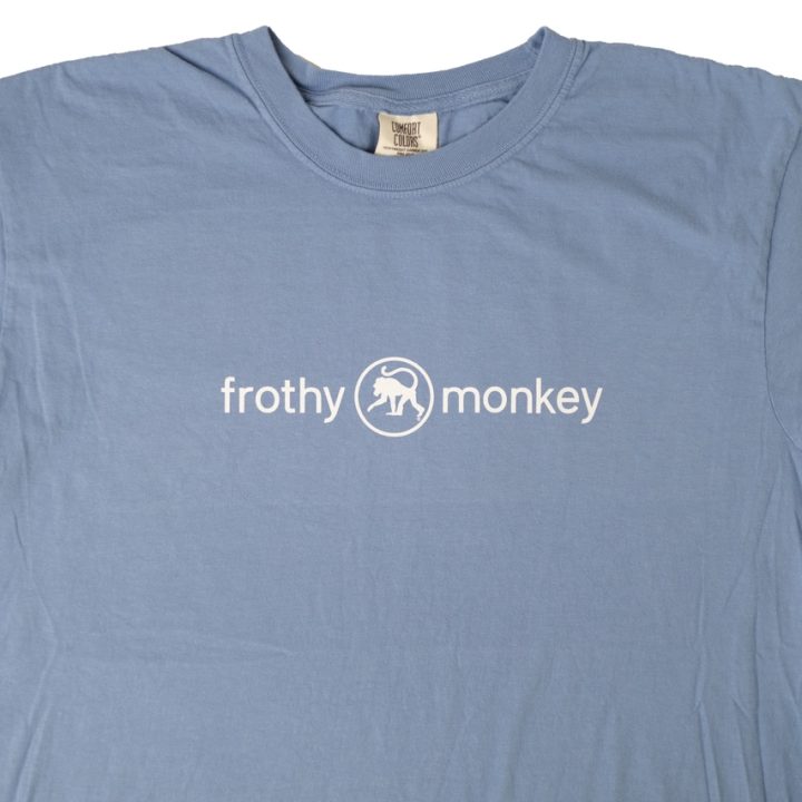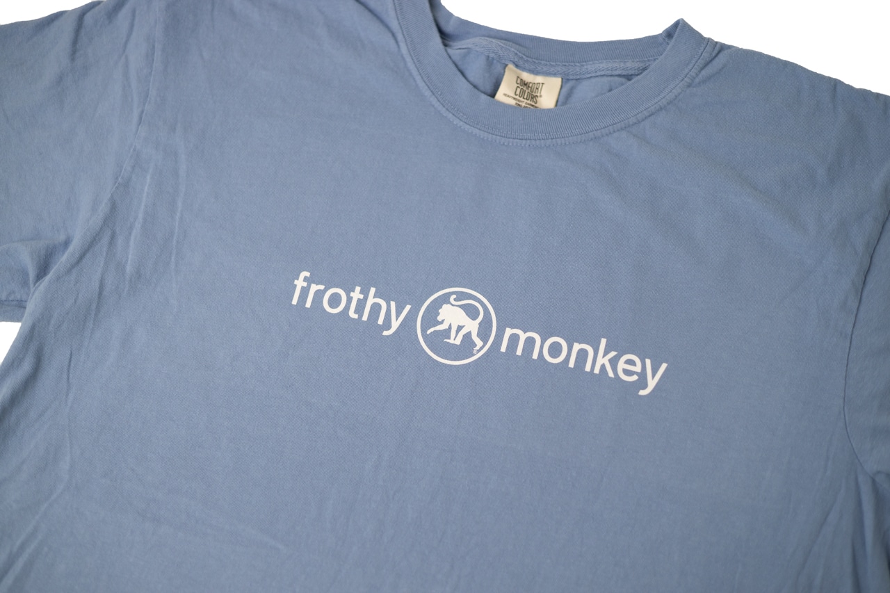 These t-shirts feature our classic Frothy Monkey word-mark logo printed with water-based, soft-touch ink on sustainably sourced 100% ring-spun cotton t-shirts. We are pleased to introduce you to your new favorite t-shirt!