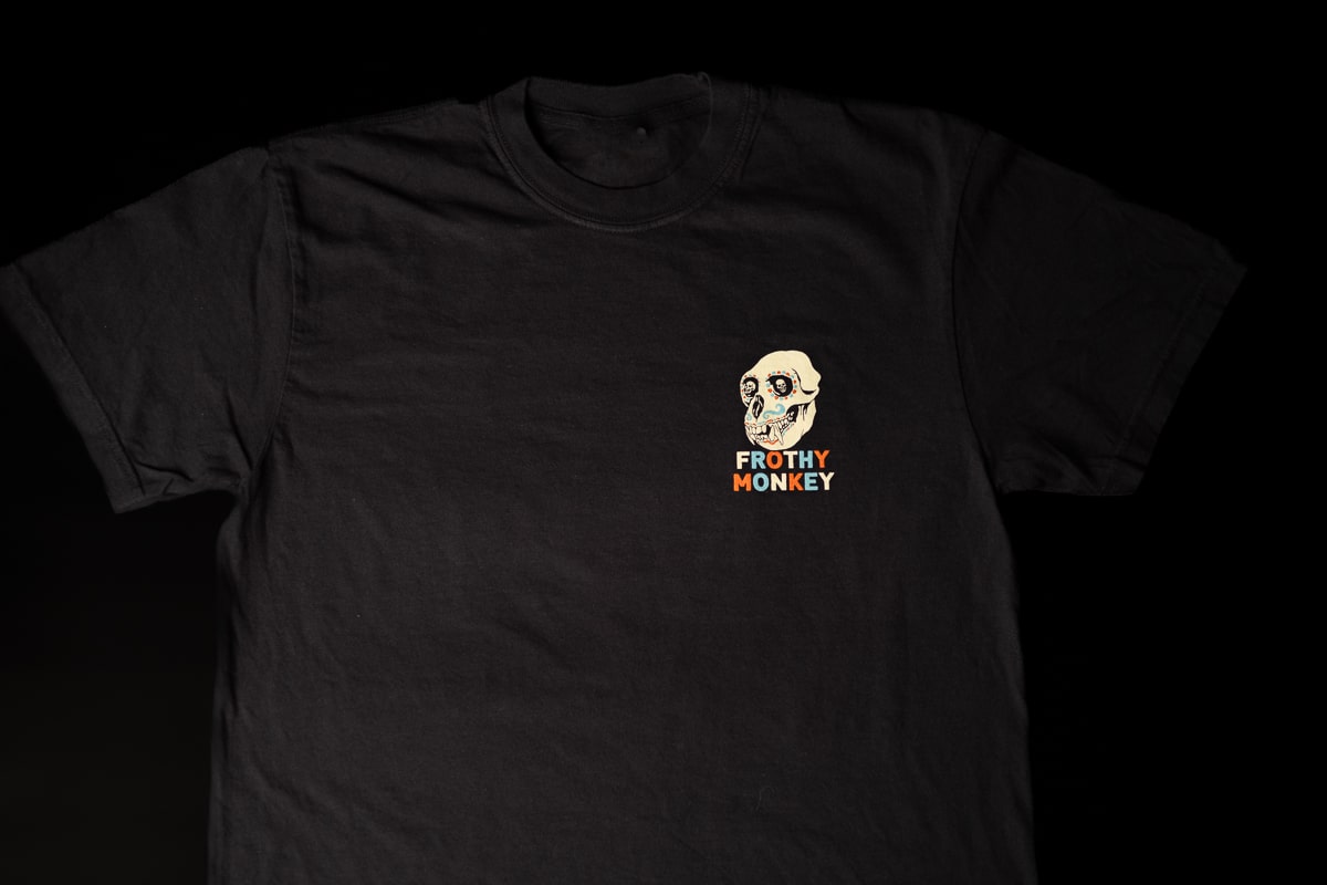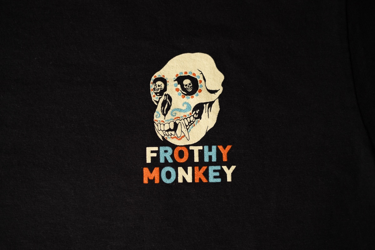 These tees feature a front left chest and back print of our Frothy Monkey Día de Muertos Monkey Skull. Available for a limited time!