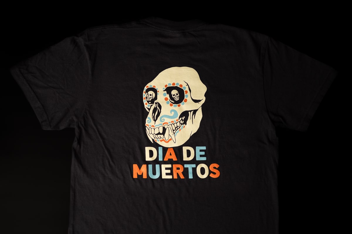 Alongside this year’s Día de Muertos coffee we’re stoked to take the amazing illustration done by Frothy Monkey’s own Neal Russler and memorialize it on a super soft, black, 100% cotton t-shirt.