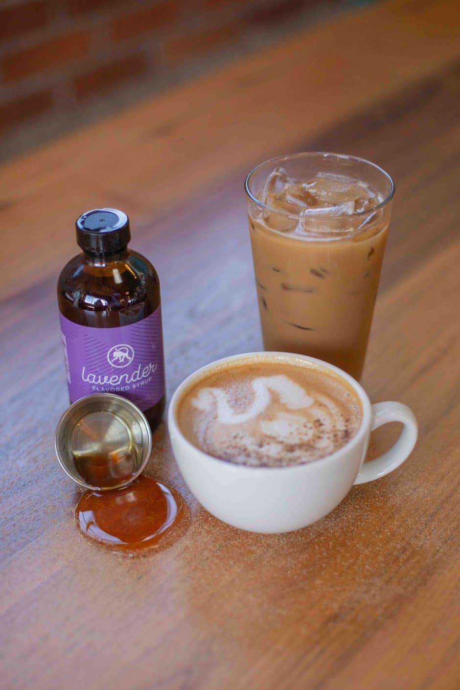The Honeybee is a lavender honey latte with a pinch of cardamom. This drink is available hot or iced.