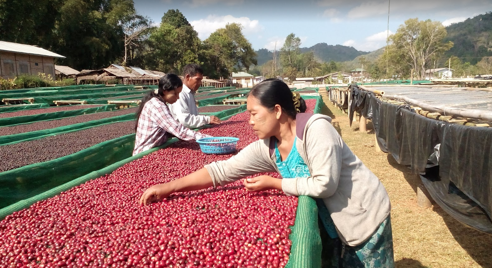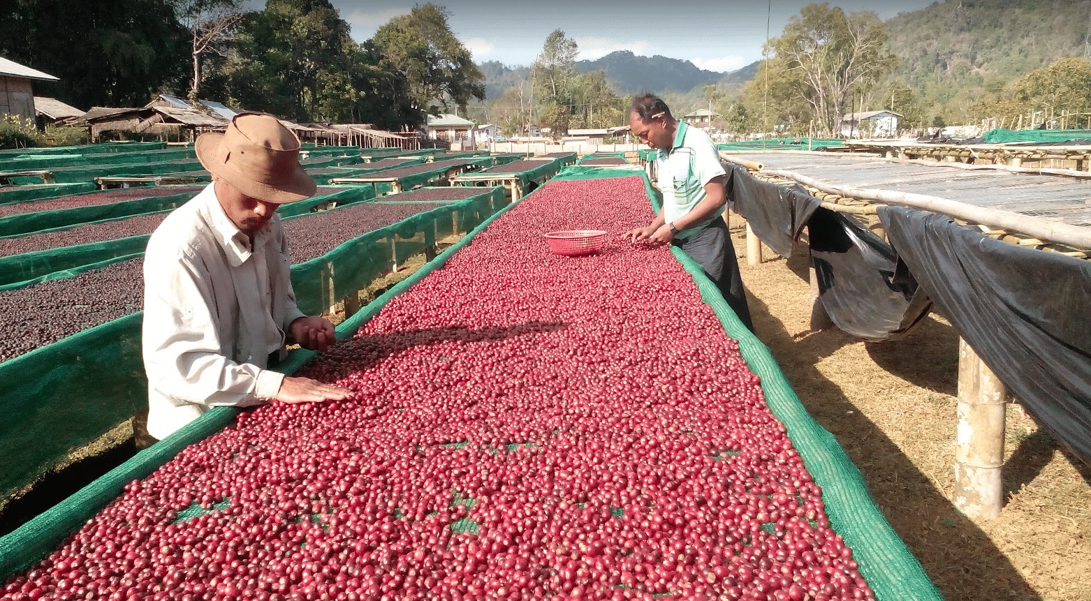 From Southern Shan State’s hills comes this exceptional natural Catuai grown by 400 Danu families at 1,356 meters. With the distinct sweetness of clear gummy bears up front, followed by rich plum notes, and finishing with wildflower honey warmth, this coffee delivers remarkable clarity.